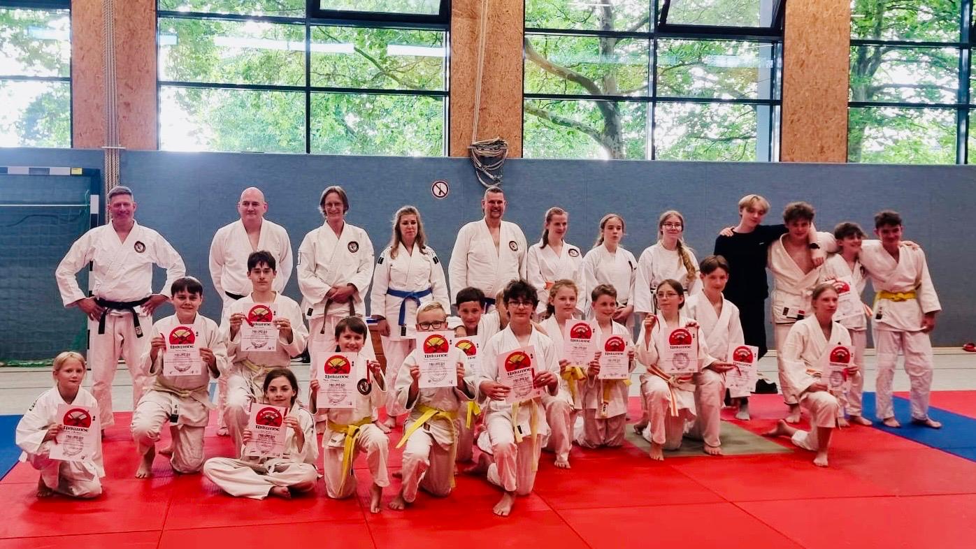 Über 80 Zanshin Dojo Erftstadt Kids und Jugentliche stellten sich der Prüfung und waren erfolgreich bei den Sommerprüfungen. Der VfB Erftstadt samt Dojo ist stolz und beglückwünscht alle Nachwuchs-Samurai.